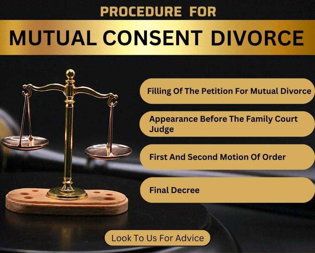 Divorce by Mutual Consent is the simplest and easiest way of dissolving marriage. Procedure for Mutual Consent Divorce is laid down as under for easy understanding:-